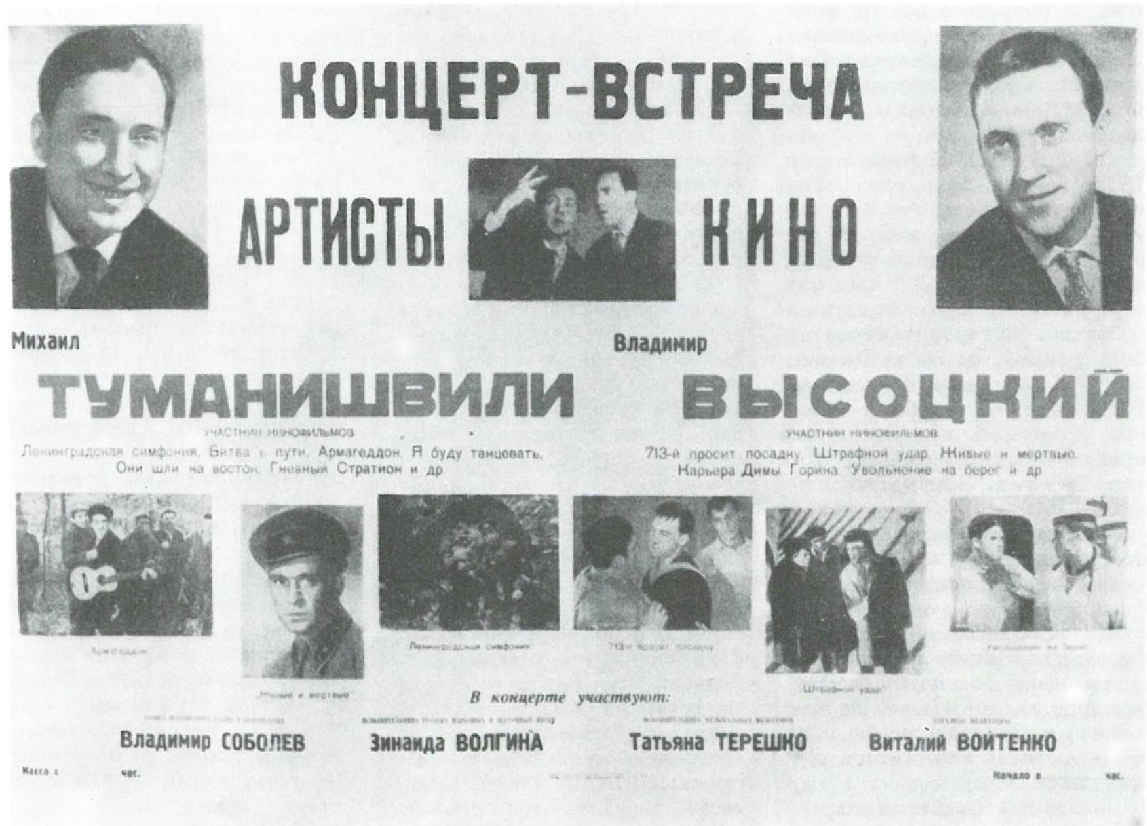 Афиша выступлений гастрольной труппы калмыцкой филармонии на Алтае. 1964 "Владимир Высоцкий"